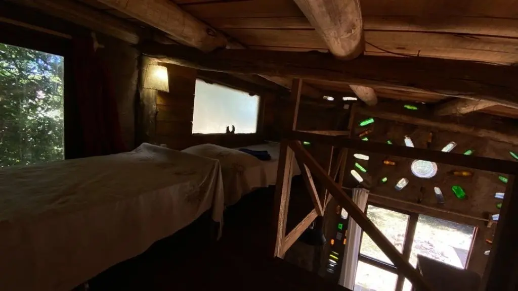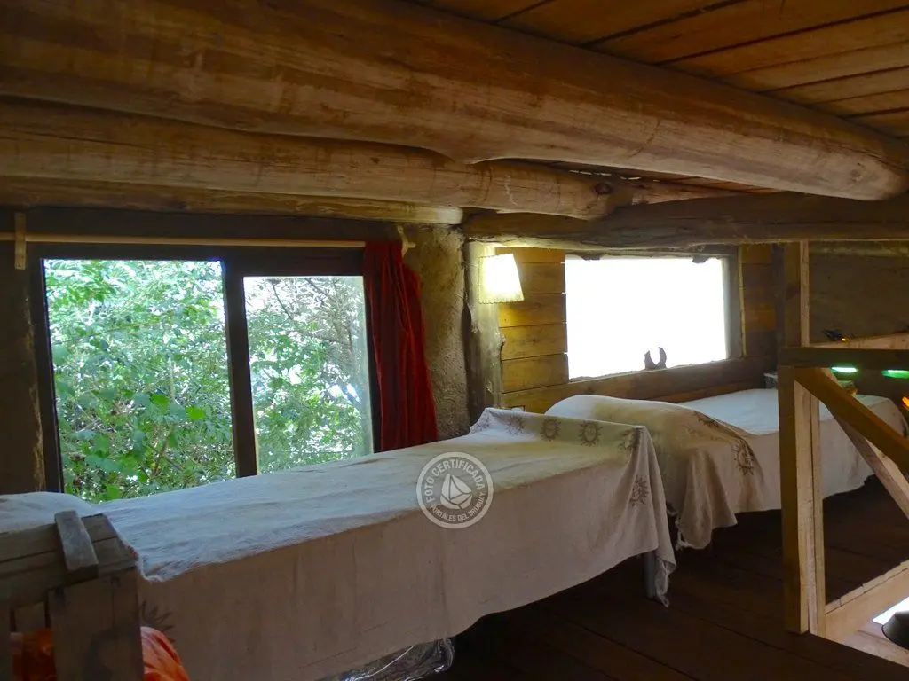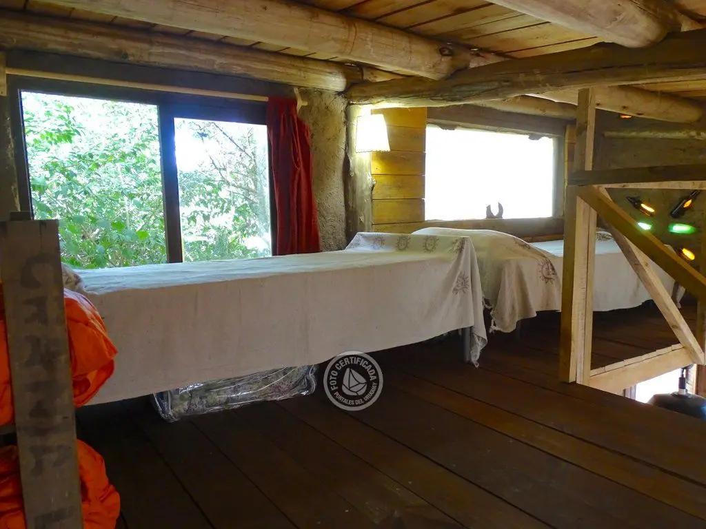 Cuenta con una habitación privada con una cama doble y un altillo con dos camas individuales.