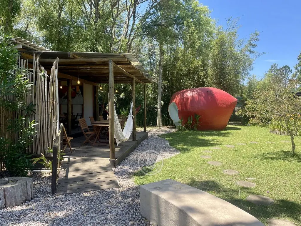 El amplio jardín es de uso común, cuenta con 2 parrilleros, horno a leña y glorieta (manzana gigante), también podrás disfrutar de un deck que llamamos Babbel, siempre está a disposición para leer, usar tu compu, o contemplar. Hay un estanque con peces y arte en cada rincón. El alojamiento tiene un patio interior. Hay un espacio de uso común con lavarropas y pileta para lavado a mano. Hay wifi en toda el área, cerca del modem la señal es mejor. La piscina está climatizada, con temperatura regulada entre 30 y 31 grados, está disponible a partir de diciembre y hasta semana de turismo