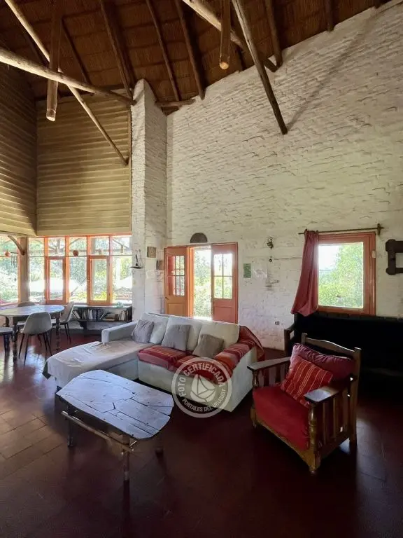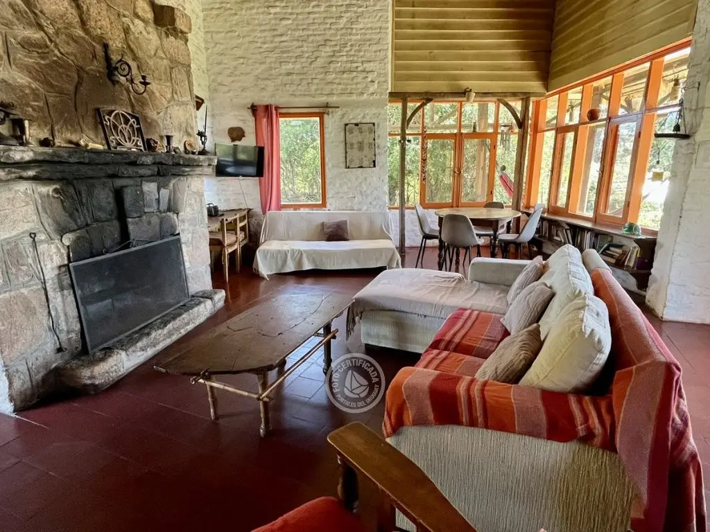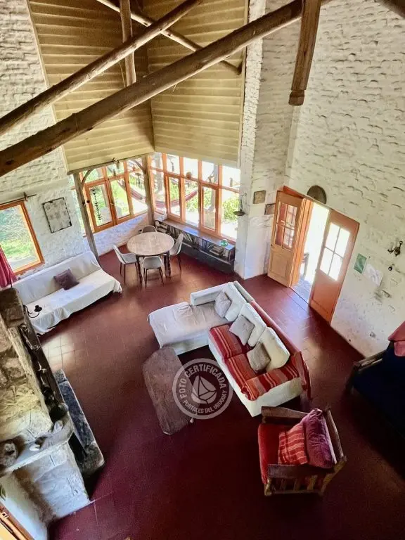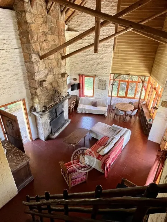 Casa Histórica de Villa Serrana con estilo y arquitectura de la época. Este tipo de construcción permite que sea fresca en verano y cálida en invierno. Ubicada en la cima de un cerro con vista a las sierras y sus valles. Cuenta con piscina y amplio deck. Capacidad hasta 10 personas (opcional 12 personas).