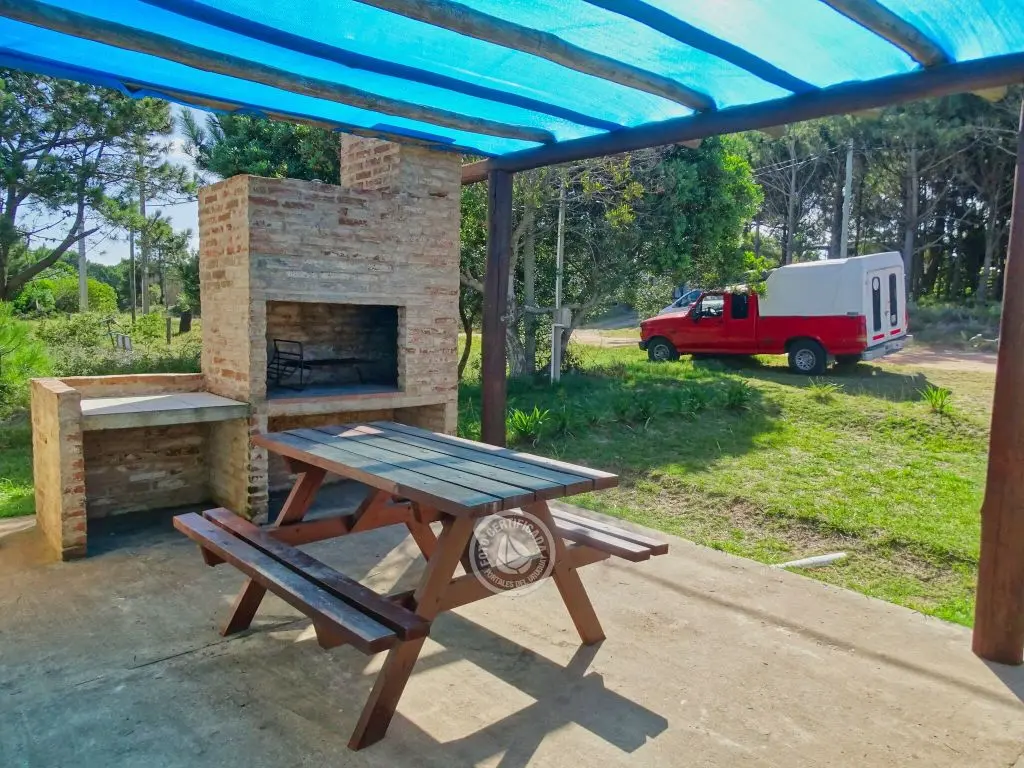 Parrillero con mesa y bancos, estacionamiento para el auto.