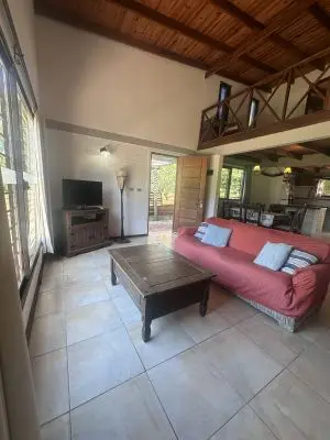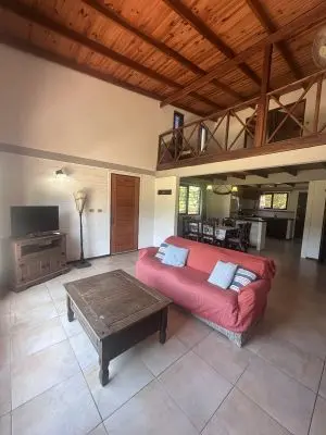 Lunas del Diablo son 2 casas simétricas para hasta 7 personas cada una, sobre el Bosque a 400mts de Playa Grande y a 500mts de la Playa del Rivero. Dos dormitorios, un baño, estufa a leña y aire acondicionado. Amplio parrillero techado y patio cercado