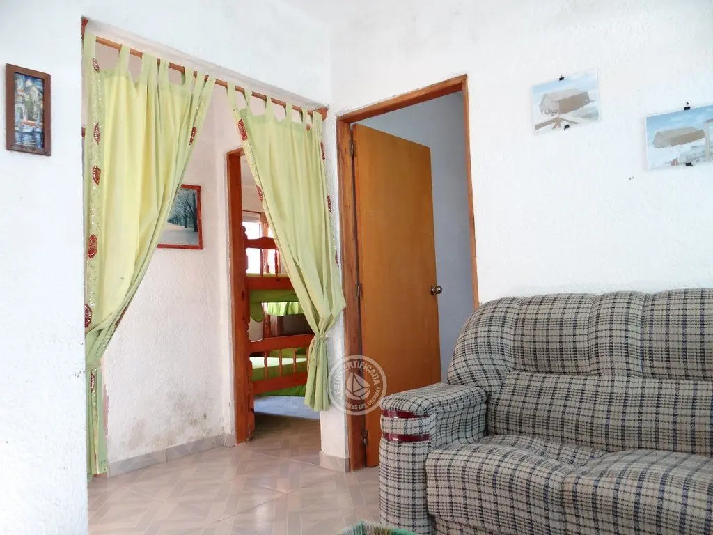 Practica casa de 3 dormitorios para hasta 8 personas. Con vista al mar y estufa a leña en el dormitorio principal.