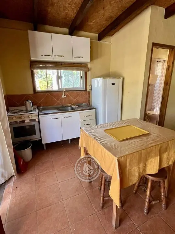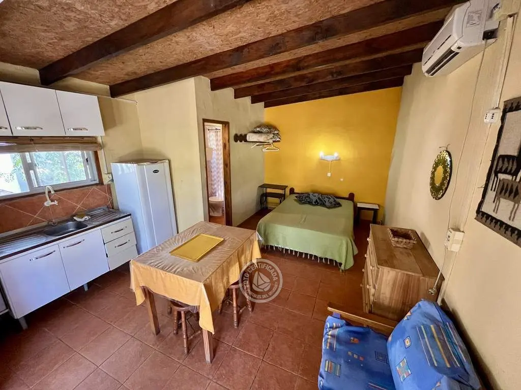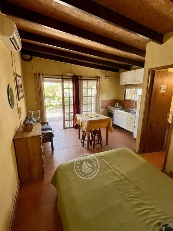 Casita monoambiente para 2 personas con parrillero, aire acondicionado y wifi. Pertenece al complejo Timbó integrado por 3 casitas monoambientes independientes.