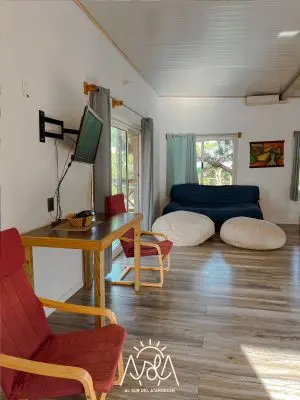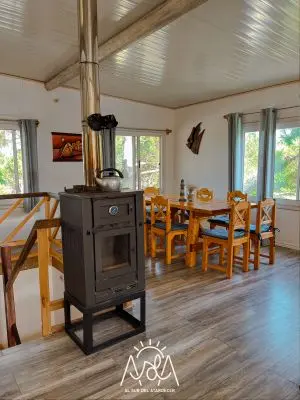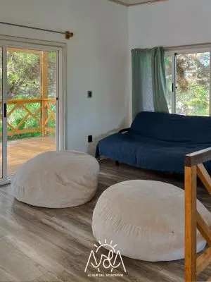 Eco- House hasta 8 personas a media cuadra del acceso a Playa Grande. Sustentada con paneles solares y agua de semisurgente.