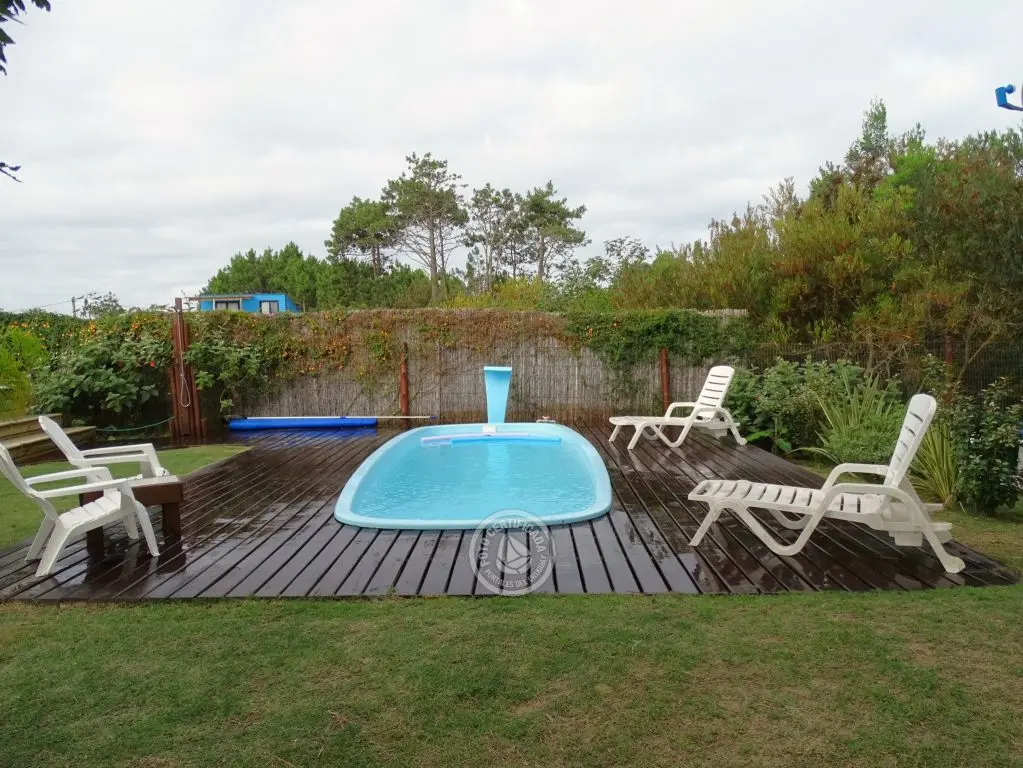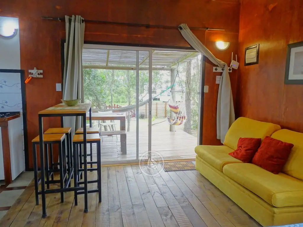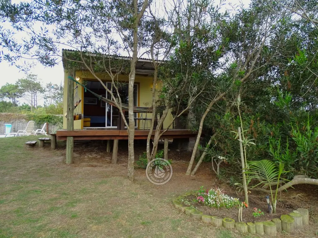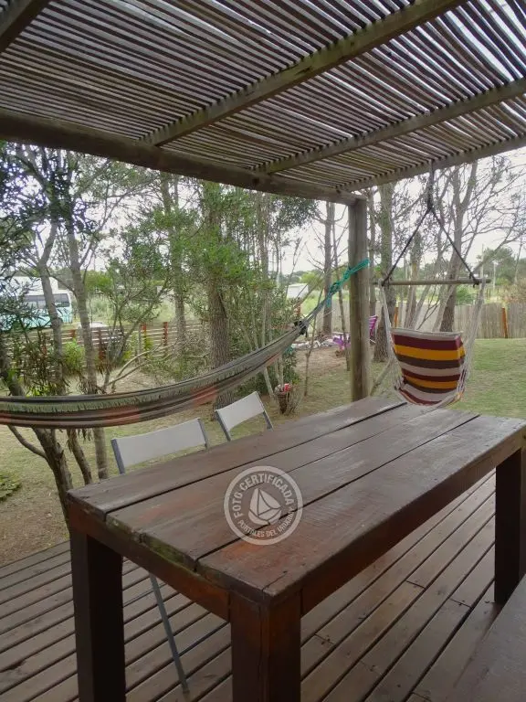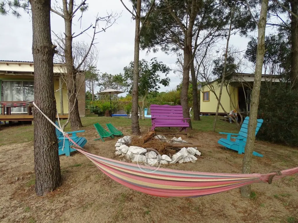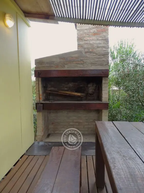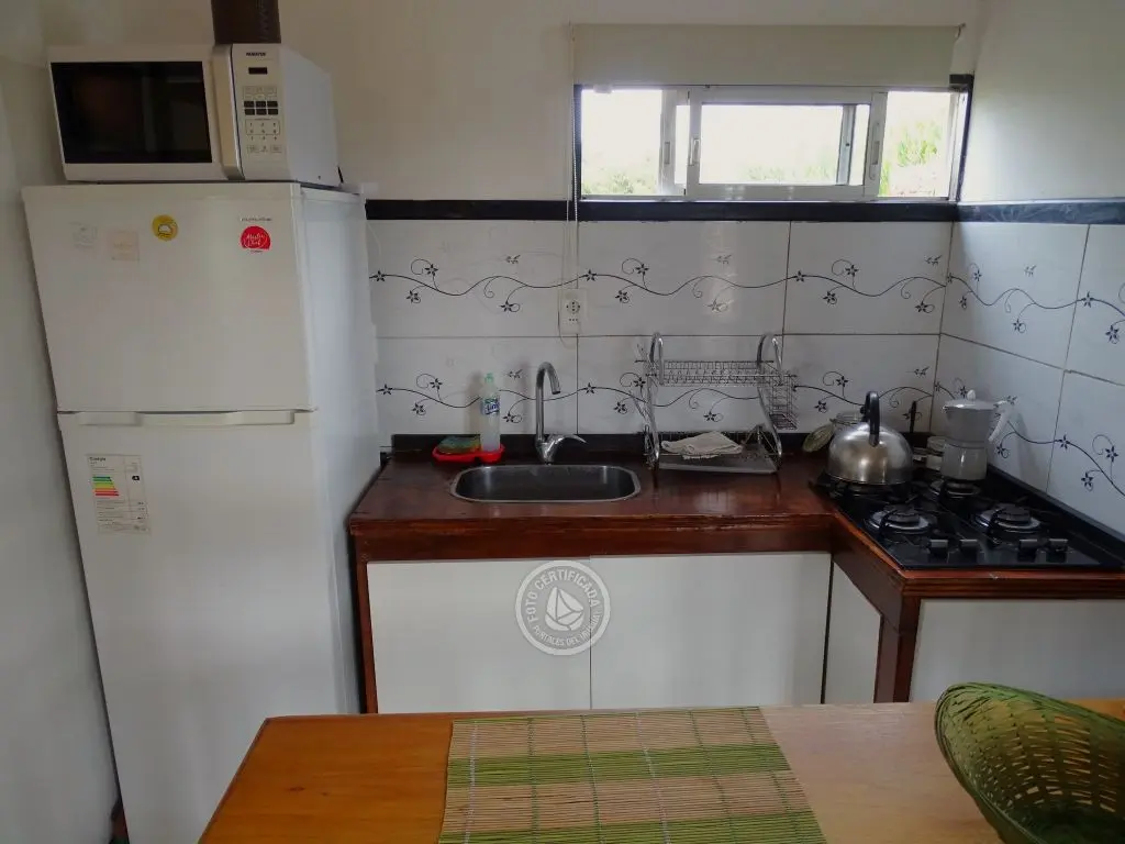Cuebta con tres cabañas monoambientes, cada una con cama matrimonial, sofa cama, deck con parrillero, mesada y bancos.