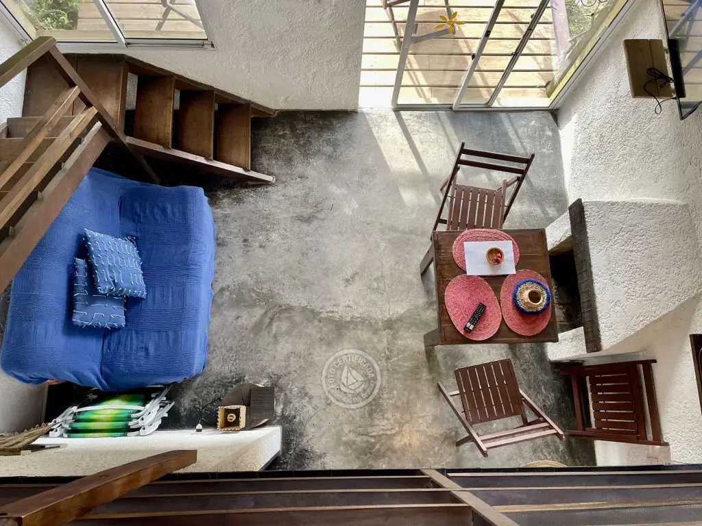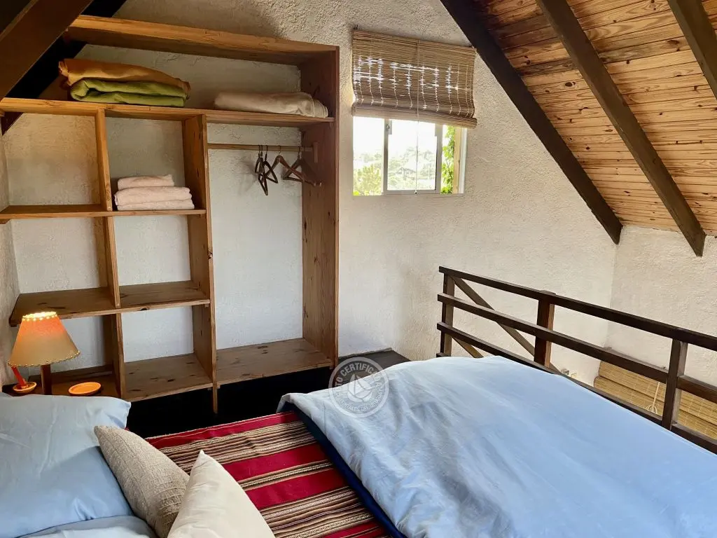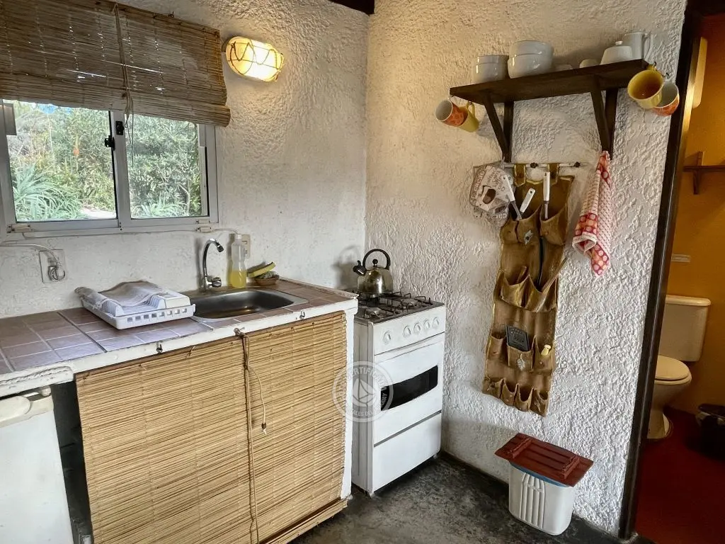 Cada cabaña tiene comodidad para dos o tres adultos o una pareja con dos niños chicos. Son estilo loft con entrepiso de madera, en planta alta esta la cama matrimonial, con amplio placard y balcón donde se pueden apreciar los atardeceres. La planta baja es un ambiente integrado, con un sofá cama de plaza y media, lugar de estar, cocina y baño.