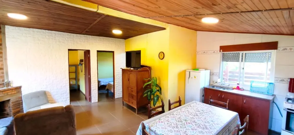 casa dos dormitorios Alvorada cerca de la playa. 2 dormitorios 5 personas, aire acondicionado, estufa a leña, wifi, bien equipada