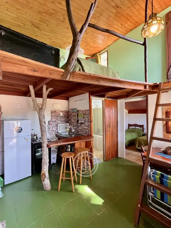 Cabaña para 4 en dos plantas con terraza, parrillero, direcTV y Aire acondicionado