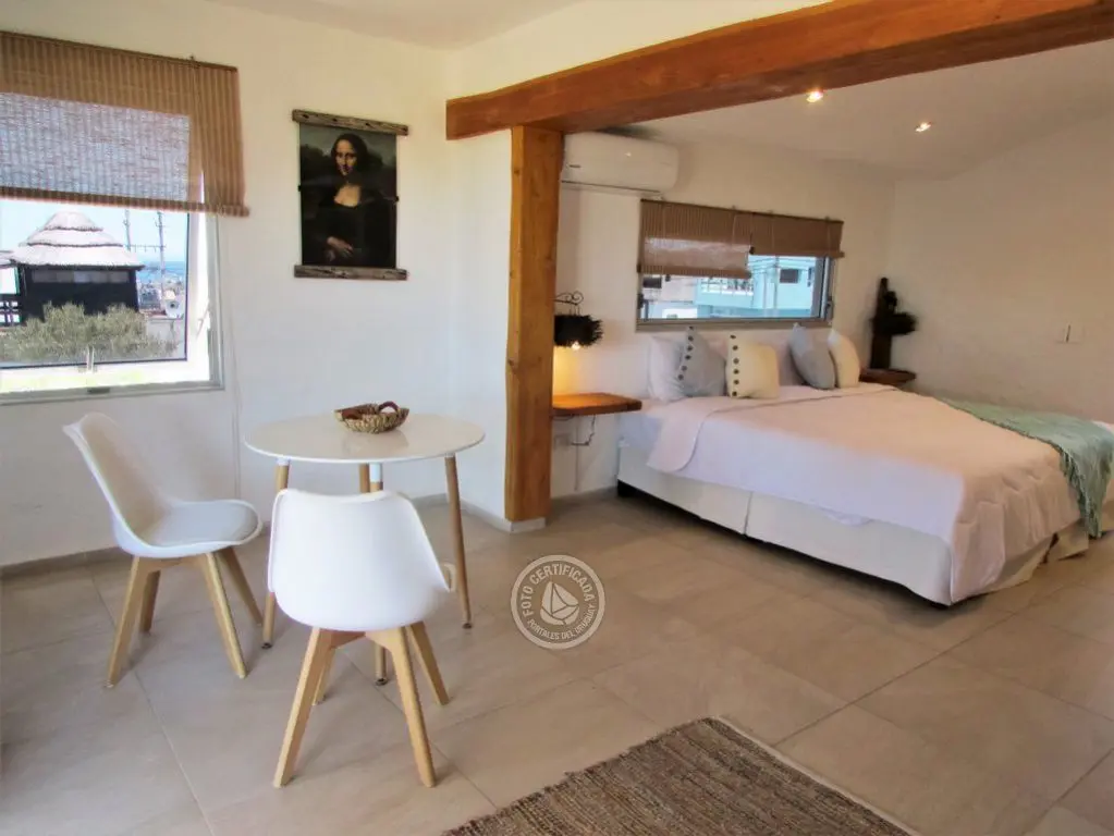 Apartamentos de 43 mtrs de un dormitorio, con cama superking y deck de 10 mtrs. Cocina kiitchenette y baño completo, televisor pantalla plana y direcTV,