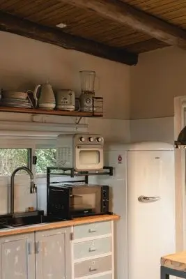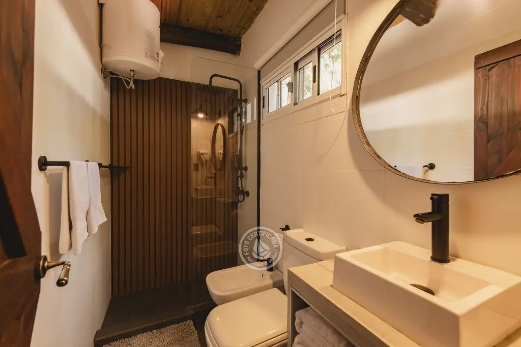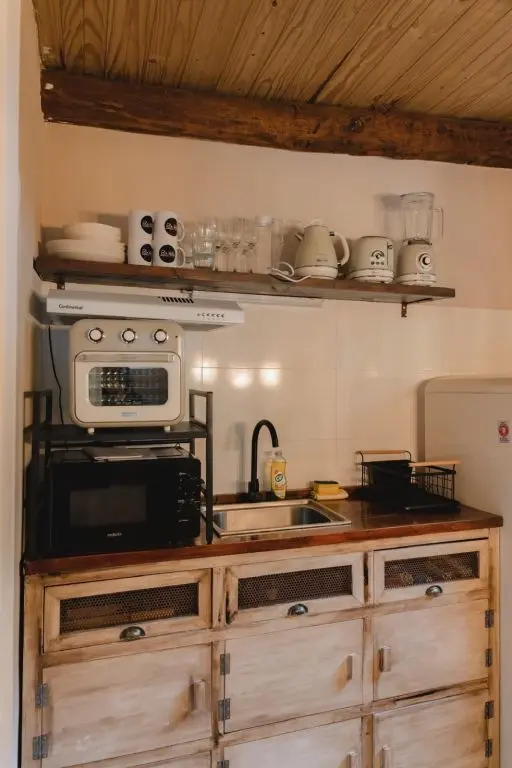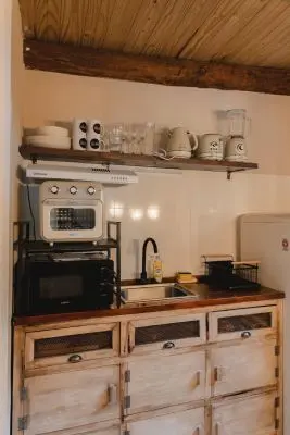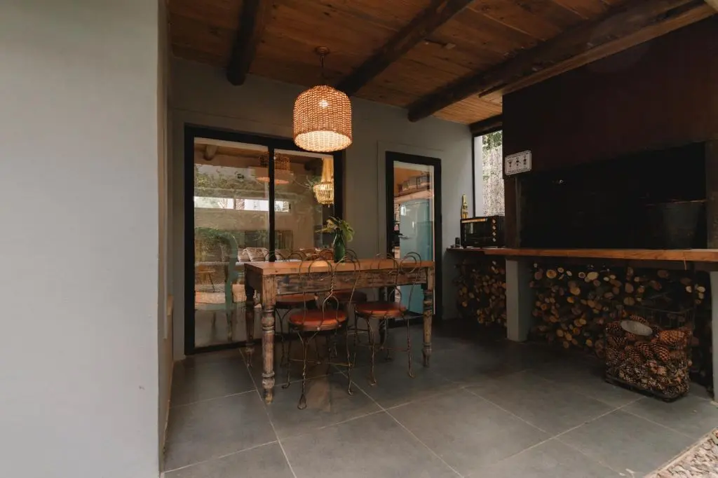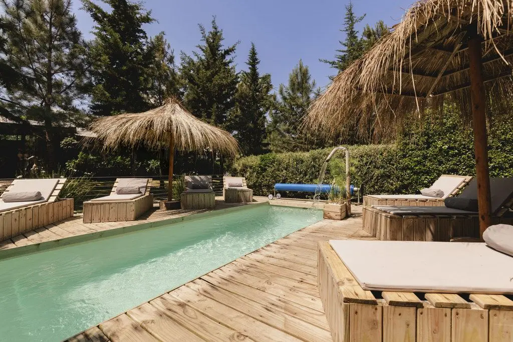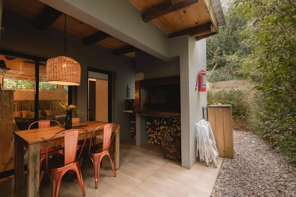 -Aire acondicionado, cómodas camas con sommiers de alta densidad , heladera con freezer , horno eléctrico, anafe , wi-fi, smart tv 32 con direct tv plus ,secador de pelo , vajilla completa, gran parrillero individual con provisión de leña ,ropa de cama y toallas de baño. En el predio rodeado de vegetación se encuentra la galería vidriada donde ofrecemos el desayuno buffet casero y súper completo, piscina climatizada con deck y espacio de sombra amoblado con camastros y cómodos sillones para tomar sol, descansar y leer , cochera techo sombra