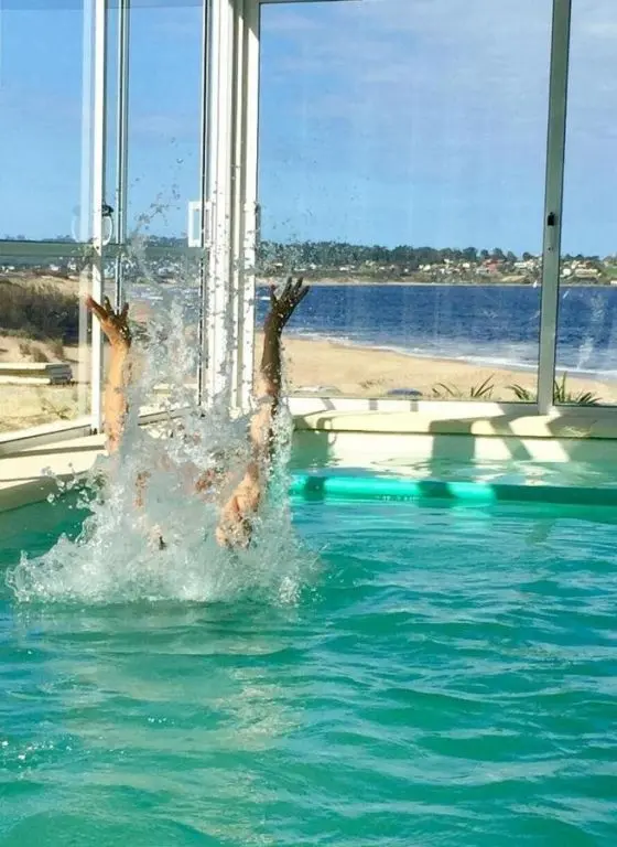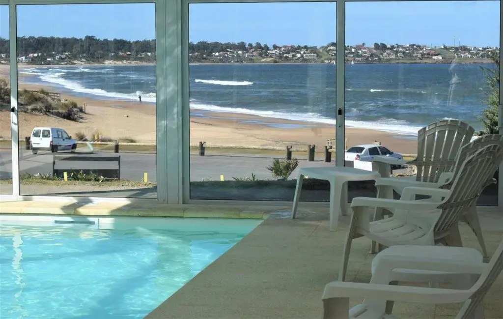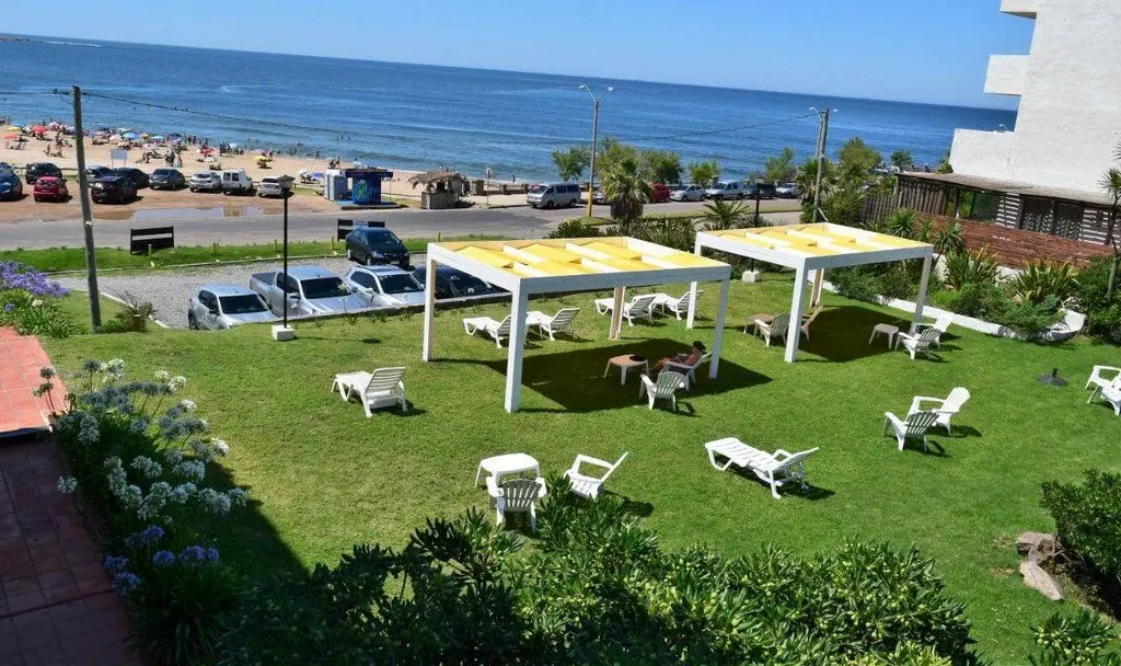 Apart Hotel em frente ao mar, cercado por montanhas e florestas.