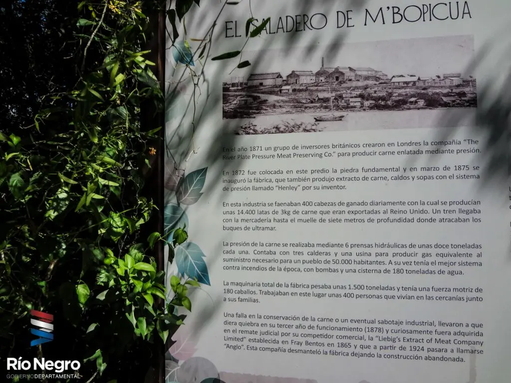 El Bioparque M´Bopicuá es un emprendimiento de la empresa Montes del Plata situado próximo a la ciudad de Fray Bentos, en el departamento de Río Negro. Se encuentra en un área llena de historia y de gran valor ambiental a orillas del río Uruguay. Con una superficie de 150 hectáreas, este bioparque comprende una estación de cría de fauna, un sendero de interpretación de flora autóctona y una zona histórica de gran valor cultural, constituida por los vestigios de una industria de conservas cárnicas del siglo XIX, conocida como "El Saladero de M´Bopicuá".