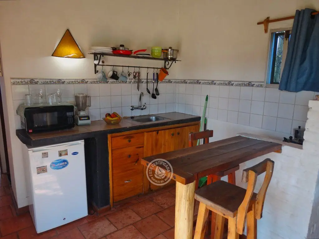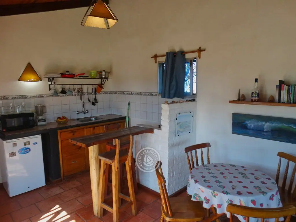 Rodeada de un hermoso jardín y deck-parrillero con cocina full-'equipe, baño confortable y calefon de 30 litros, TV cable, Wi'-fi, hamacas, frazadas, sábanas 100% algodón y buena calidad de somier y colchon. Disfrute con su familia o amigos, bienvenidos