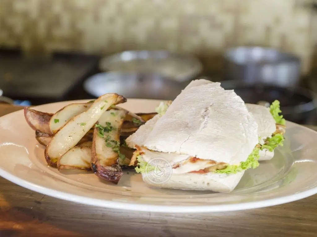 Comida caseira preparada com natural e fresco, pão caseiro.